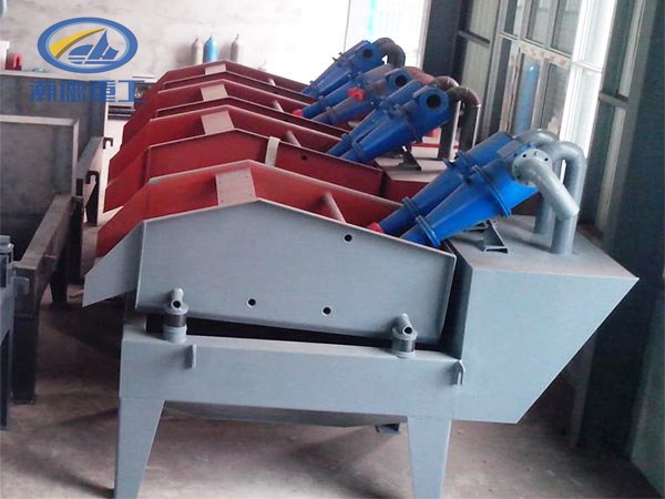 2、細砂回收系統工作過程:將砂水混合物輸送至旋流器離心分級濃縮的細砂經深砂嘴提供給振動篩經振動篩脫水后,細砂與水的有效分離,少量細砂、泥等經返料箱再回到清青洗槽,清洗槽液面過高時,經出料口排出,直線振動篩回收物料重量濃度為70- 85%調節細度可通過改變券泵轉速、改變砂漿濃度、調節溢流水量、更換出砂嘴來實現。從而完成清洗、脫水和分級三種功能。